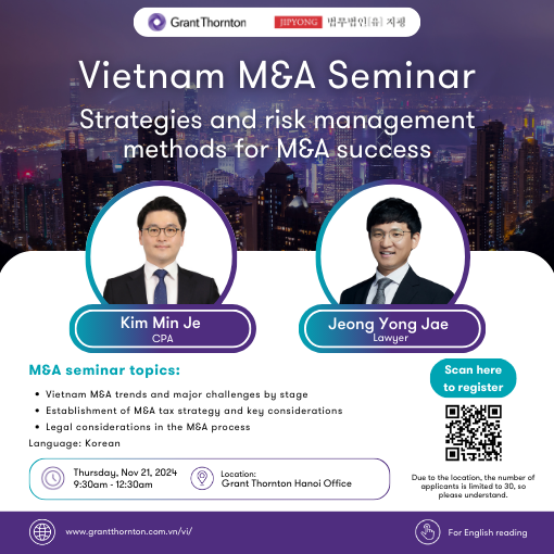 Grant Thornton, in collaboration with the Jipyong Law Firm, aims to hold a seminar to share valuable insights from financial, tax, and legal perspectives for Korean business leaders.