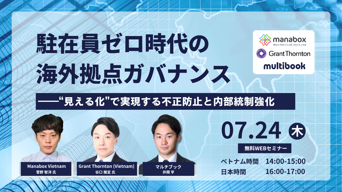 Grant Thornton Vietnam, in collaboration with Multibook and Manabox Vietnam, is pleased to announce an upcoming webinar titled: "Governance of Overseas Offices in the Era of Zero Expatriates - Enhancing Fraud Prevention and Internal Controls through Visualization".