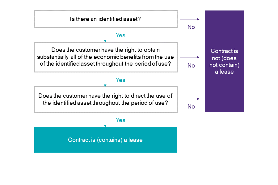 Applying the new definition involves three key evaluations, all of which must be met in order to conclude that a contract is or contains a lease. These evaluations are summarised in the following flowchart: