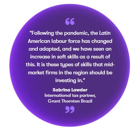 “Following the pandemic, the Latin American labour force has changed and adapted, and we have seen an increase in soft skills as a result of this. It is these types of skills that mid-market firms in the region should be investing in.” - Sabrina Lawder, International tax partner, Grant Thornton Brazil