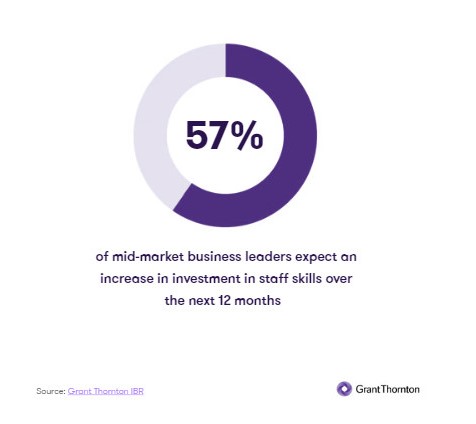 Firms recognise the importance of investing in the skills development of their teams, ranging from training programmes to apprenticeships. This is one way that mid-market businesses can bring new skills into their teams, without having to make expensive hiring decisions.