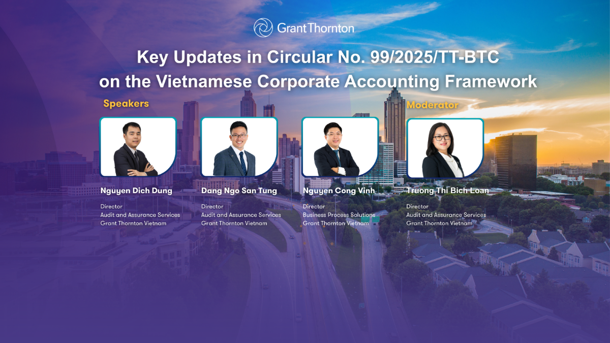 On 18 December 2025, Grant Thornton Vietnam hosted an online seminar titled “Key Updates in Circular No. 99/2025/TT-BTC on the Vietnamese Corporate Accounting Framework”, with the aim of supporting businesses in staying informed of key revisions and proactively preparing for practical implementation.