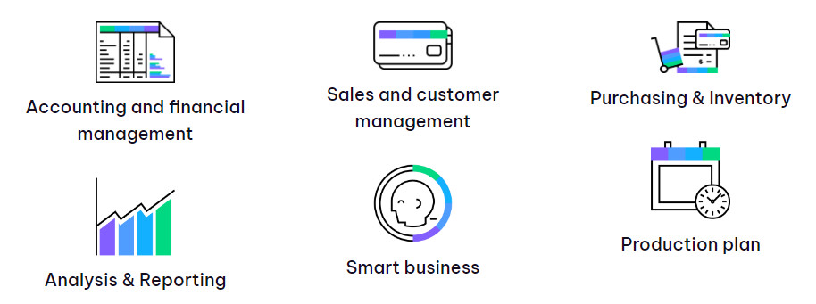 Reduce business management costs from finance, purchasing, inventory, customer relationship management to project management, human resources activities...