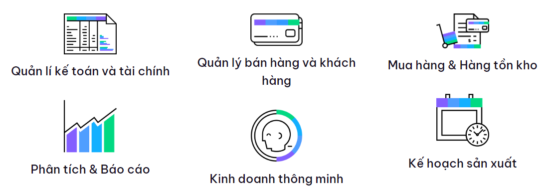- Giảm chi phí quản lý kinh doanh từ tài chính, mua hàng, hàng tồn kho, quản lý quan hệ khách hàng đến quản lý dự án, hoạt động nhân sự….