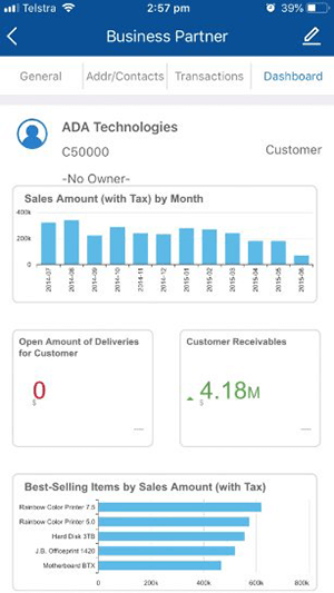SAP Business One trao quyền cho nhân viên của bạn để đưa ra các quyết định thông minh và nhanh hơn bằng cách nắm bắt tất cả thông tin quan trọng về bán hàng, khách hàng, hoạt động và tài chính – làm cho thông tin đó ngay lập tức có sẵn trên toàn công ty.