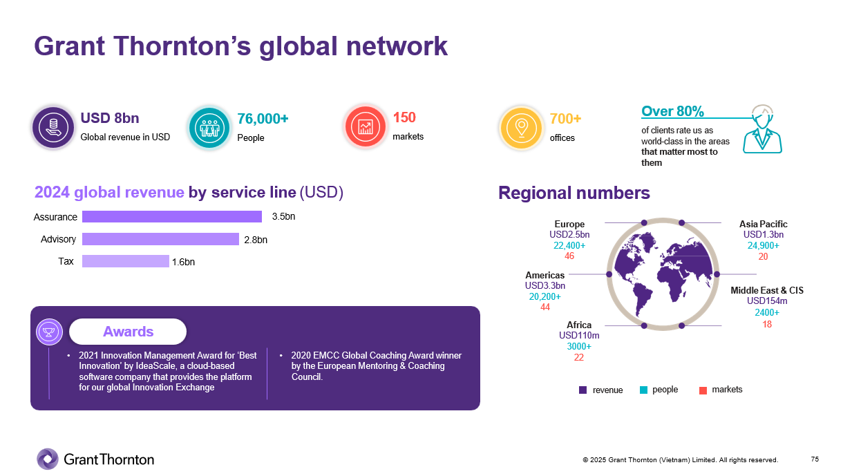 Tại Grant Thornton, một trong những điều hấp dẫn nhất khi làm việc tại đây là cơ hội được tham gia các dự án đa quốc gia trên toàn thế giới.