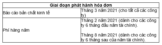 Chúng tôi sẽ tiếp tục phát hành hóa đơn riêng biệt phí hàng năm và báo cáo bản chất kinh tế trong năm 2021, giai đoạn phát hành hóa đơn của chúng tôi như sau: